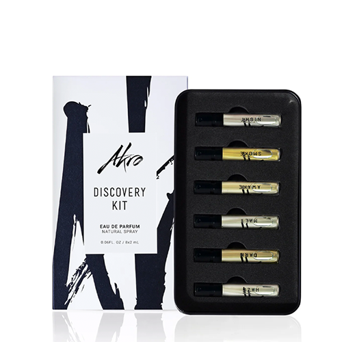 El Discovery Kit incluye siete fragancias transgresoras, perfectas para quienes desean descubrir el universo Akro de manera completa, experimentar cada una de sus historias y encontrar la que mejor conecte con su identidad. Las muestras de 2 ml permiten probarlas cómodamente en la piel, apreciando su evolución y carácter en distintos momentos del día.